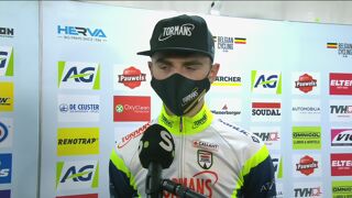 "Ik reed een hele koers met Jente (Michels) voorop, maar ik had zoveel geluk met Joran (Wyseure) als ploegmaat op de 3e plaats", analyseerde Belgisch kampioen Emiel Verstrynge.