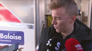Opgave. We zien Thibau Nys naar de ziekenwagen wandelen. Hij ondersteunt met zijn ene arm zijn andere arm. De BK-droom is weg. Hopelijk valt de schade mee. . 14 uur 24.